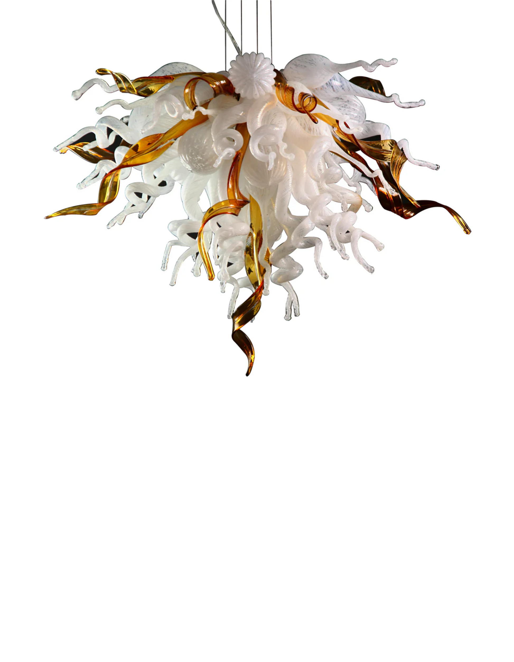Elevate your VIZ Glass ColorSelect Chandeliers into a captivating work of art with the Golden Amber Leaf Kit. Inspired by the fluid elegance of nature, these striking curled leaves add a bold, unexpected twist to our ColorSelect Chandeliers, transforming them into captivating sculptures of light and artistry.