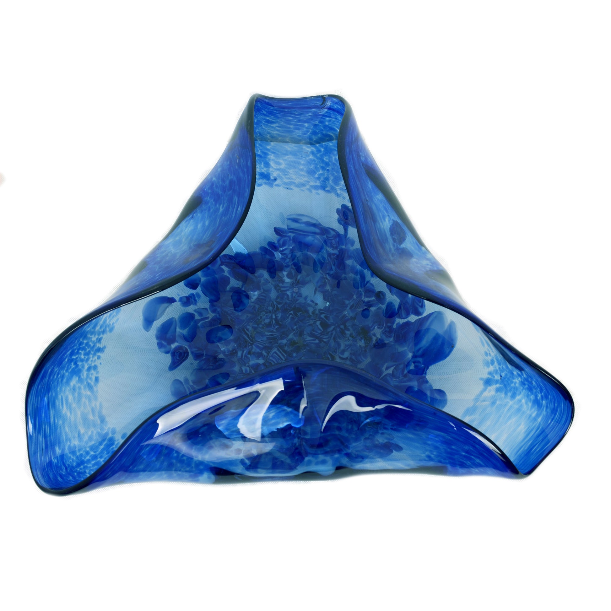 Nova Azure Cascade - Handblown Art Glass Three-Folded Platter (Item #6707TB)