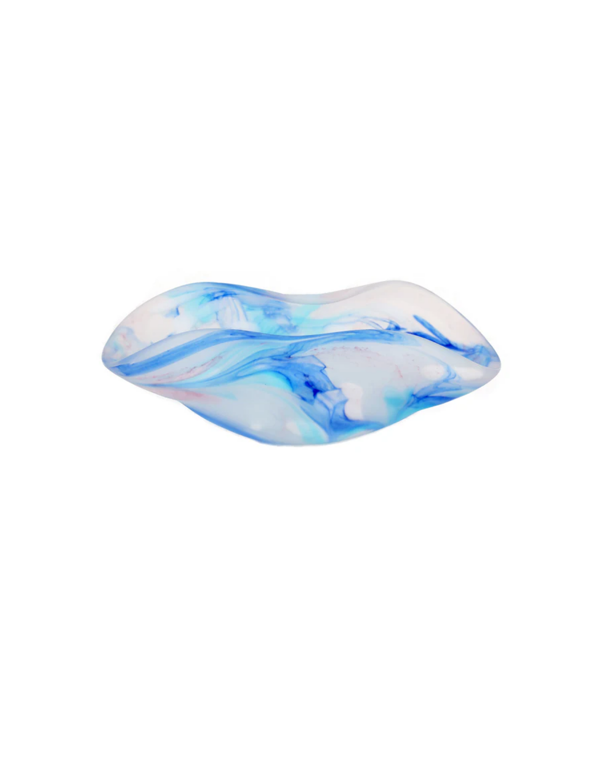 The "Ocean Breeze" platter features a harmonious swirl of soft blues and whites, reminiscent of clear skies and rolling waves. The fluid design mimics the natural ebb and flow of water, creating a soothing visual effect that transports you to the calm shores of a peaceful beach. The subtle gradients of color blend seamlessly, adding depth and dimension to the piece.