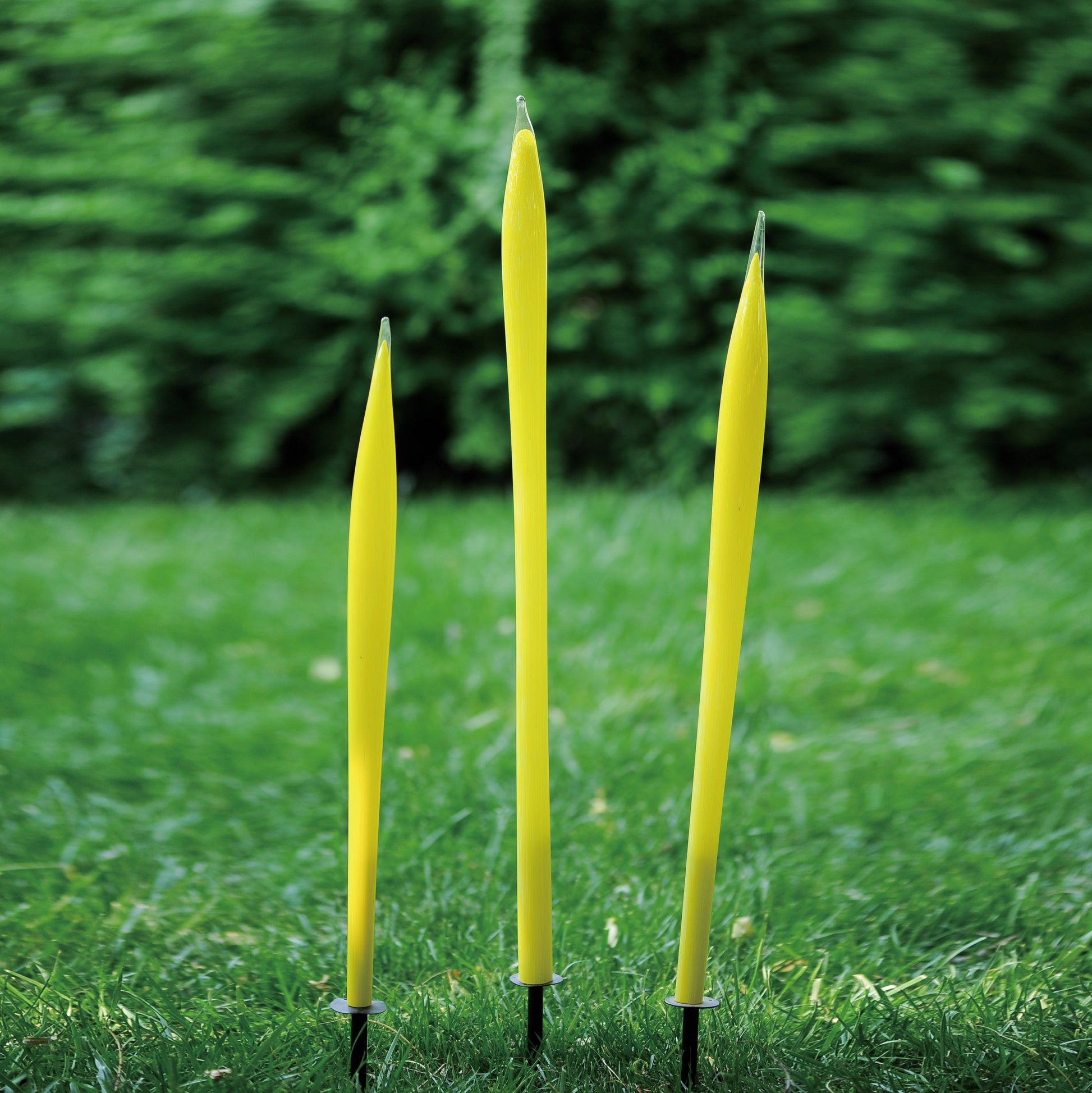 These 3 piece Color Spike sets create bold pops of color that compliment everything from an evergreen garden to a desert cactuses garden. The set comes with three varying lengths from 23" to 32" and includes the ground spikes.