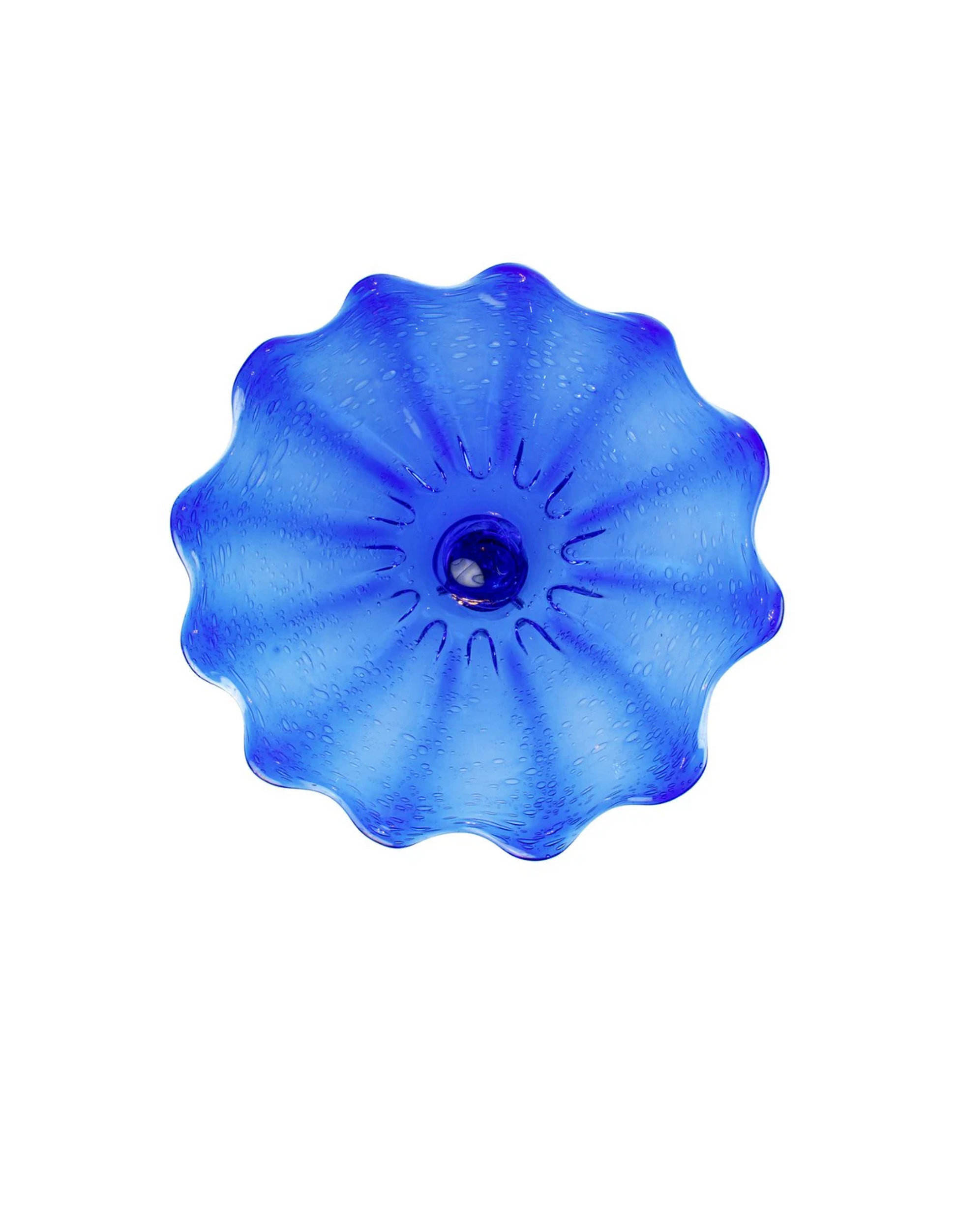 Step into the tranquil beauty of Azure Bloom, a striking wall art piece by Viz Glass. This single-layered creation combines the timeless elegance of Murano glass blowing with a vibrant blue hue, enhanced by delicate bubbles seeded into the glass, adding texture and sparkle.