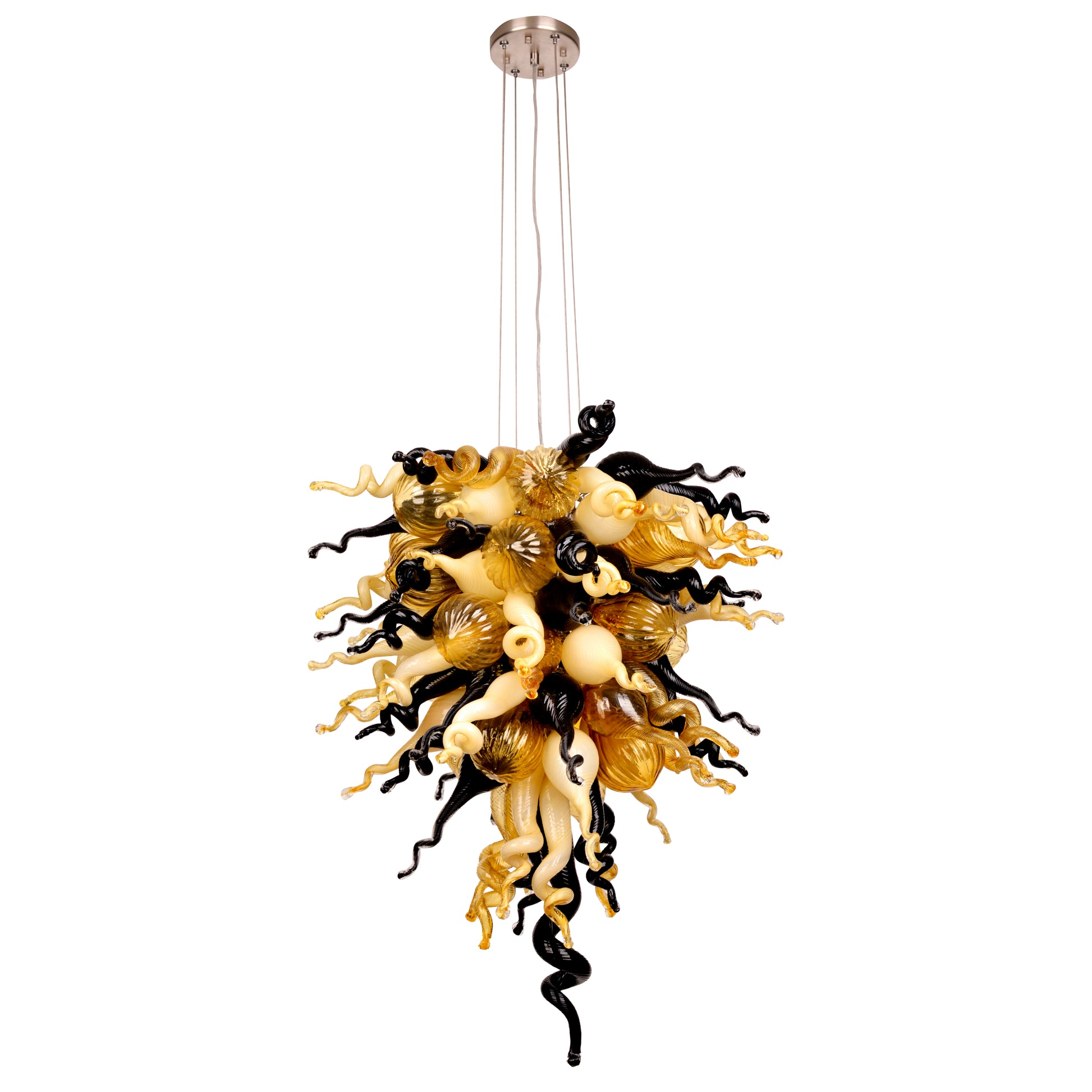 The ColorSelect Baltic Amber Tall Chandelier is equal parts Amber (NA), Black (BL), Beige (CB) , or create your own design from our pallet of 24 colors.