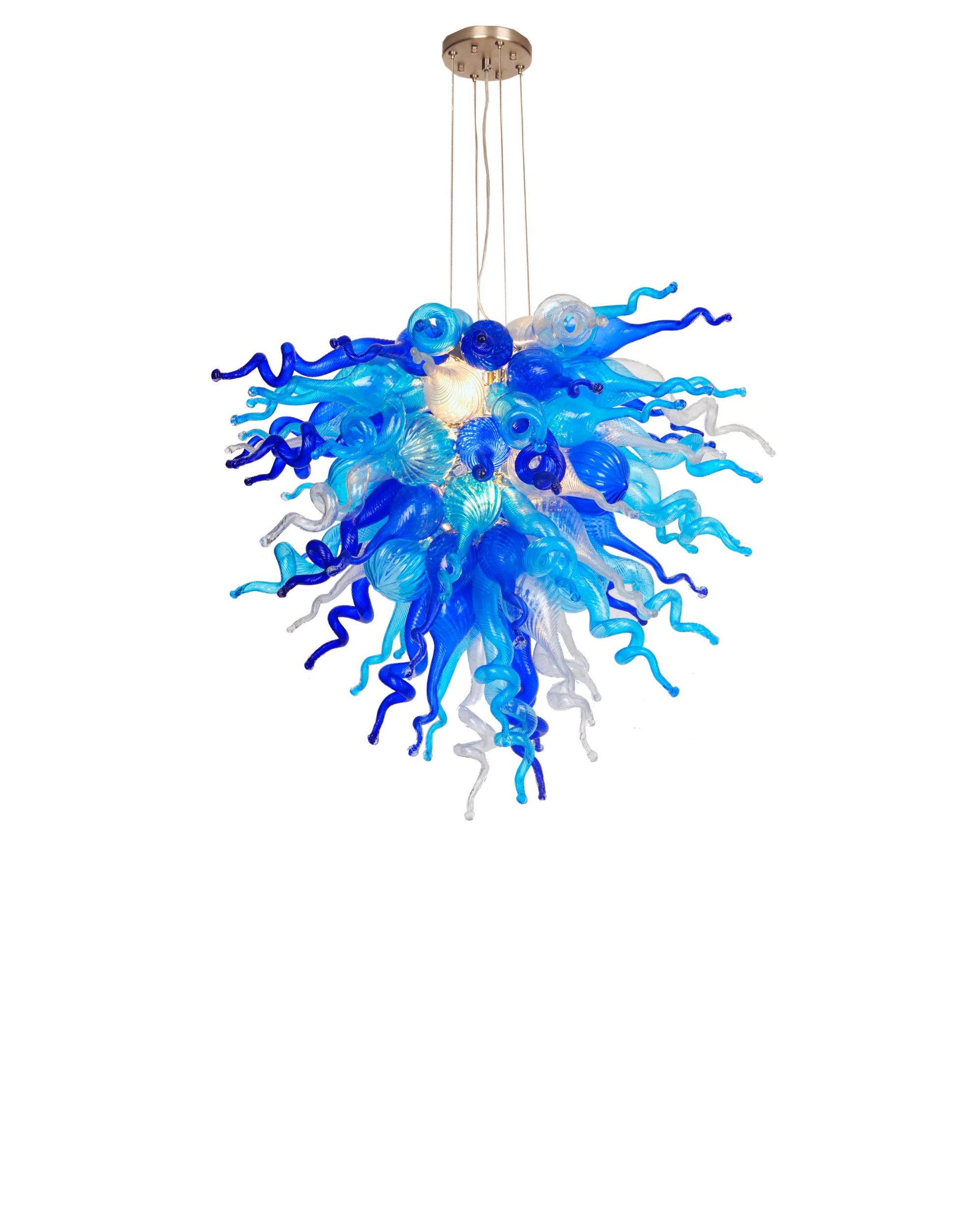 The ColorSelect Waterfall Large Chandelier is 40% Aqua (A), 40% Cobalt Blue (B), 20% Clear (C), or create your own design from our pallet of 24 colors.