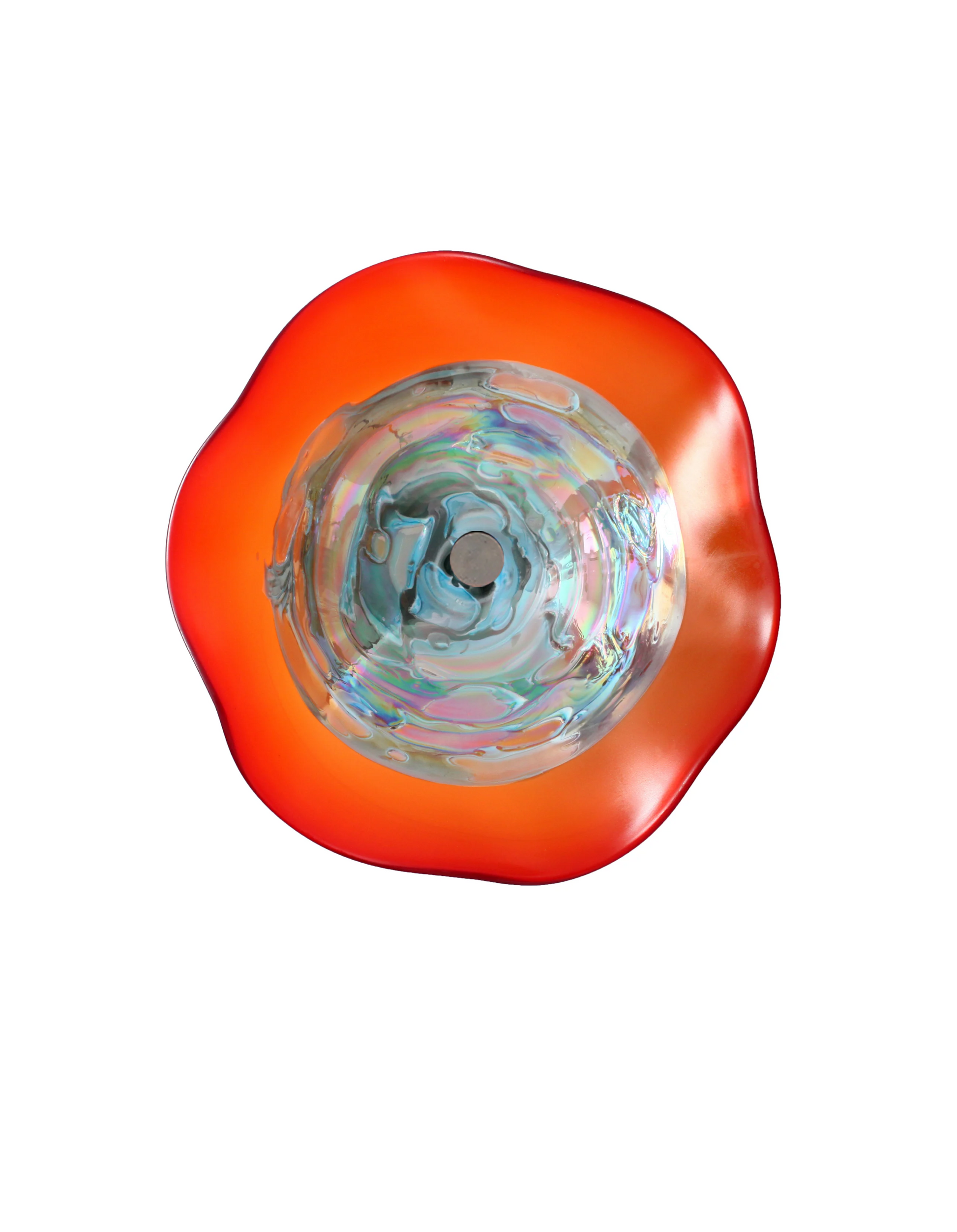 Our specially designed hardware system features articulated arms and adjustable-length segments, enabling creative design possibilities and adaptability to both flat and recessed ceiling surfaces. This flexibility allows our vibrant, handcrafted glass plates to enhance spaces of any scale, from intimate interiors to expansive installations.
