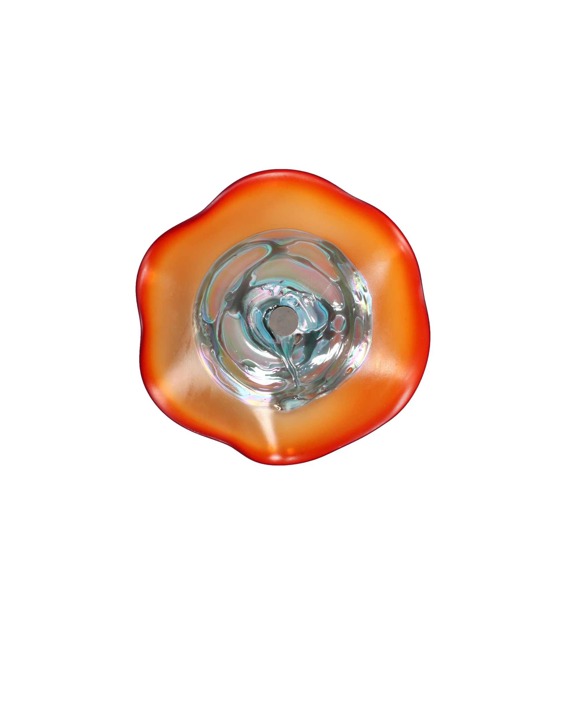 Our specially designed hardware system features articulated arms and adjustable-length segments, enabling creative design possibilities and adaptability to both flat and recessed ceiling surfaces. This flexibility allows our vibrant, handcrafted glass plates to enhance spaces of any scale, from intimate interiors to expansive installations.