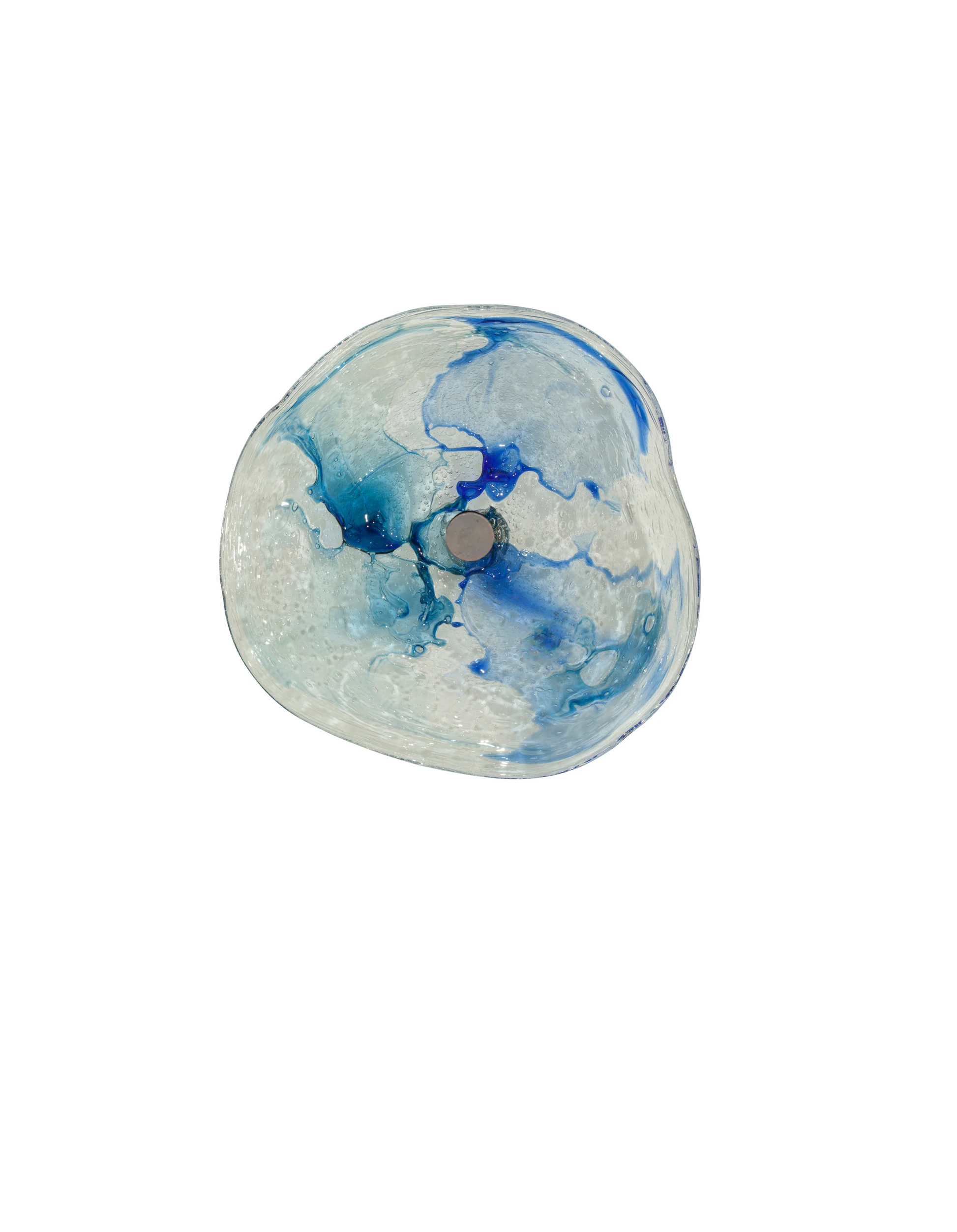 Our specially designed hardware system features articulated arms and adjustable-length segments, enabling creative design possibilities and adaptability to both flat and recessed ceiling surfaces. This flexibility allows our vibrant, handcrafted glass plates to enhance spaces of any scale, from intimate interiors to expansive installations.
