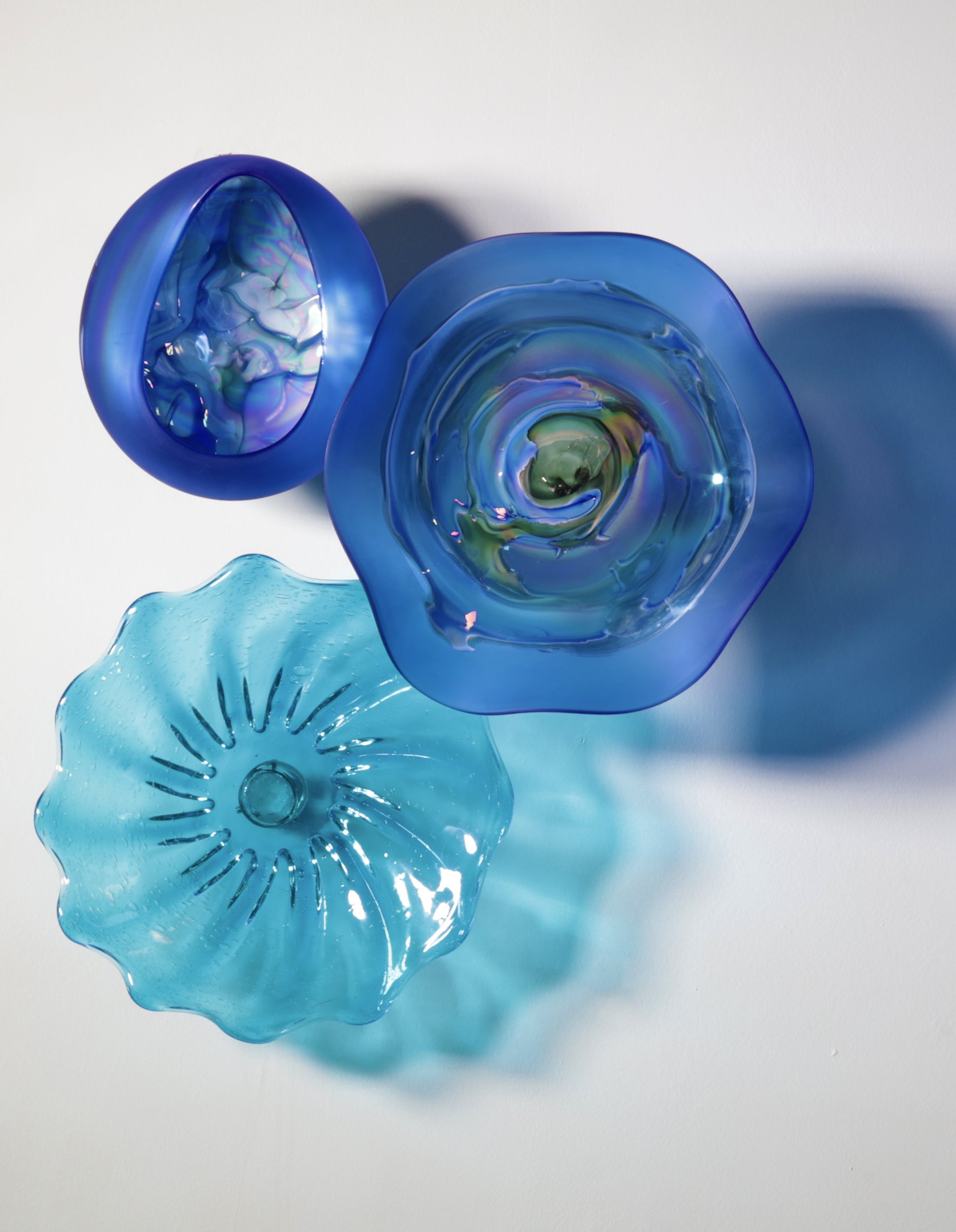 Immerse your space in the tranquil beauty of Celestial Tide, an exquisite wall art piece by Viz Glass. Expertly crafted in the tradition of Murano glass blowing, this masterpiece captures the ethereal hues of a deep blue sea and the swirling motion of ocean tides, creating a breathtaking visual experience.